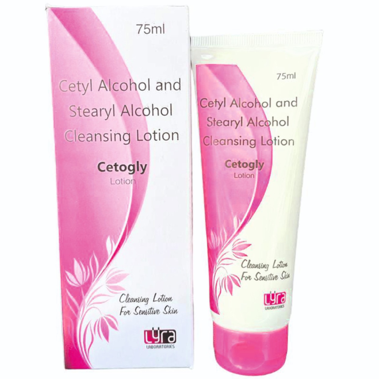 Cetogly Lotion Description: Cetyl Alcohol locks moisture into the skin and form a protective barrier through which water cannot penetrate. It is used to prevent and treat dry and parched skin. It also prevents rough and scaly skin and reduces itching and irritation. Stearyl Alcohol is a naturally generating fatty acid. It is used to soothe irritated skin and acts as a skin conditioning agent. It also has anti-ageing properties and reduces signs of ageing.