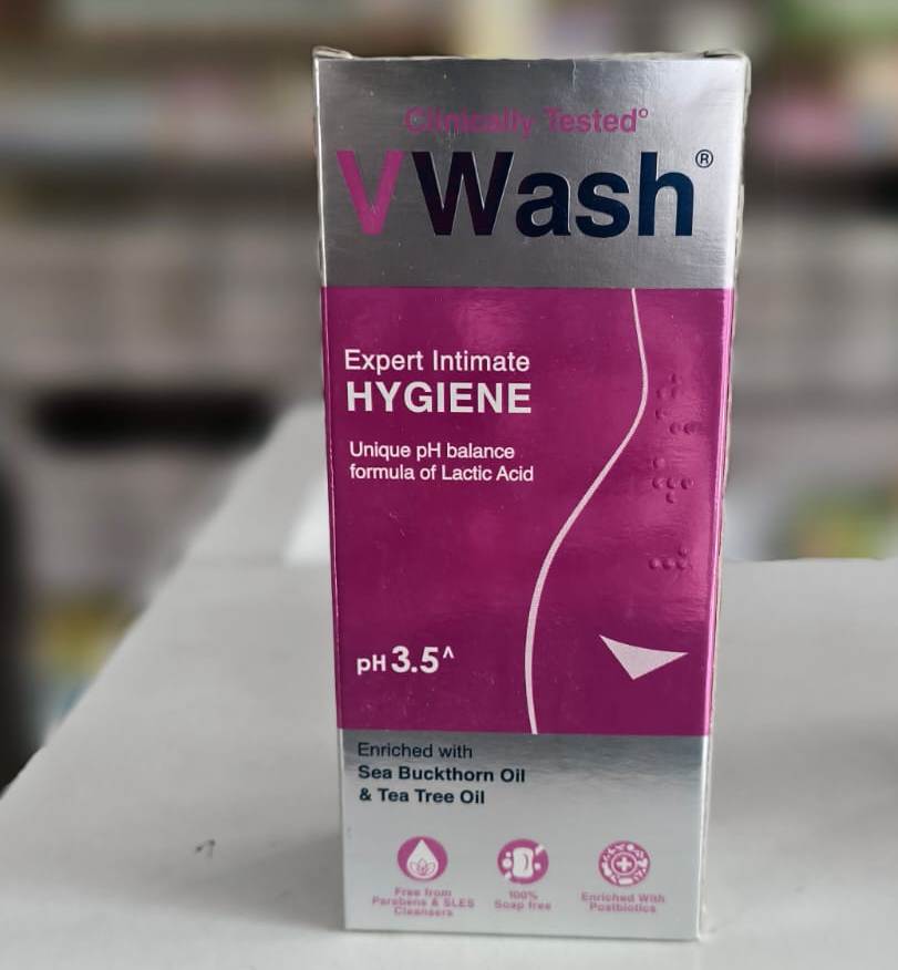 VWash Intimate Hygiene Wash is a mild, soap-free formulation specially designed to maintain a woman’s intimate hygiene. Enriched with lactic acid, it helps maintain the natural pH balance of the intimate area, protecting against irritation, itching, odor, and discomfort.